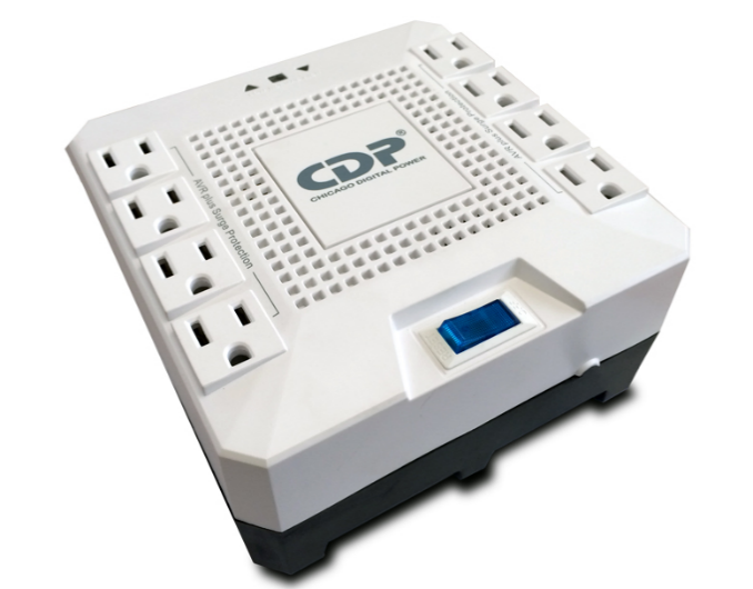 Voltaje automático de 1800 VA regular con potente supresor de sobretensión incorporado y 8 toma corrientes NEMA 5-15 montados en la parte superior con 4 regulados y 4 solo con sobretensión. Protección de interruptor de encendido / apagado y carcasa de plástico anti-flama para su seguridad.