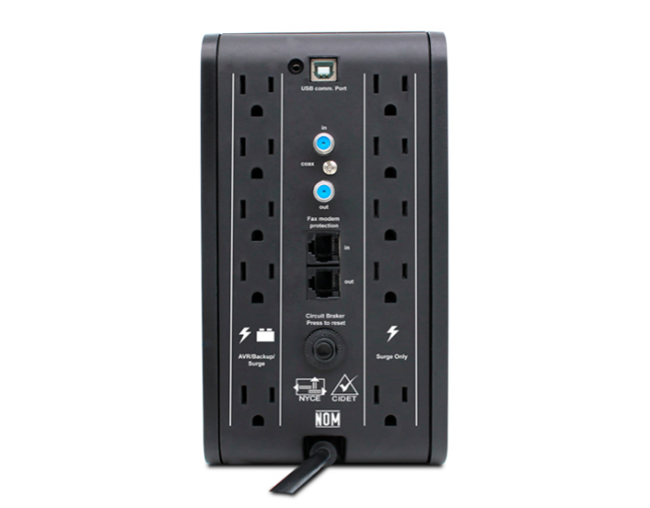 UPS interactivo de línea de 750VA / 1000 VA / 1200 VA / 2000 VA para hogar / oficina. Baterías de plomo-acido selladas internas, regulador de voltaje, supresor de sobre tensión y salidas de derivación para cargas más grandes. Proporciona energía continua a enrutadores WIFI, sistemas de alarma y equipos informáticos. Los modelos de mayor capacidad en torre ofrecen una pantalla LCD avanzada que es interactiva e ilustra funciones como niveles de batería, % de carga, % de batería, voltaje de entrada, voltaje de salida, Hz.